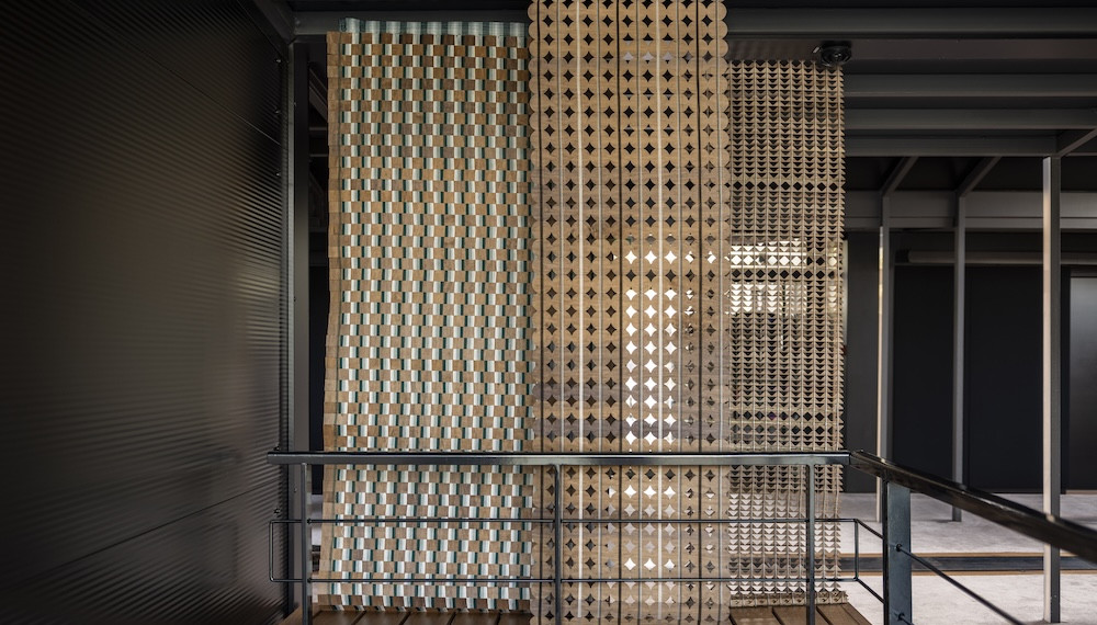 Par le jeu de découpes plus ou moins ajourées et l’insertion de fils métal, il est également possible de temporiser l’opacité des pièces, pour créer des canopées aux rythmes anguleux ou ronds, réguliers ou saccadés, filtrant la lumière au grès de vos besoins.